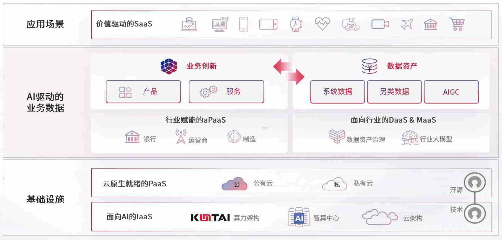 数字时代,,,,围绕企业数字化转型的关键要素,,,赏金国际数码开创性的提出数云融合战略和技术体系框架,,,着力在云原生、、、数字原生、、、AI原生和信创产业上架构产品和服务能力,,,,为处在不同数字化转型阶段的快消零售、、、、汽车、、金融、、、医疗、、、政企、、教育、、、、运营商等行业客户提供泛在的敏捷IT能力和融合的数据驱动能力,,,构建跨界融合创新的数字业务场景和新业务模式,,助力企业级客户建立面向未来的核心能力和竞争优势,,,,全面推动社会的数字化、、、、智能化转型升级。。