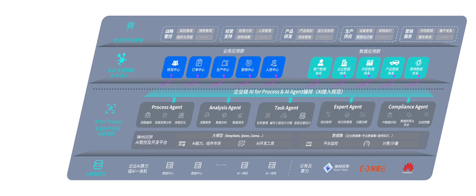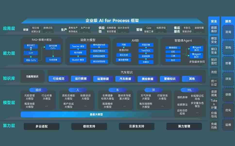 端到端的一站式AI工作空间深度融合了从企业战略规划到日常经营的全流程业务板块,,,定向解决车企内部领域多、、、部门多、、、、链条长、、、、场景碎片化等难题,,,,支持车企快速构建以AI为核心的生产力写作体系,,,实现任务执行与AI能力的无缝集成与交互