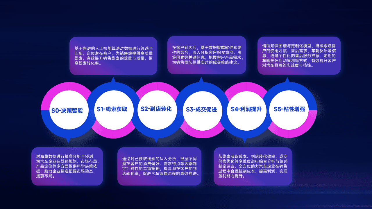 通过拓宽潜在客户来源、、优化线索分配并提高到店转化率,,以增强销售效率。。。同时,,,,利用线索数据不断优化分析模型,,,有效提升转化率,,,扩大营销影响力。。。